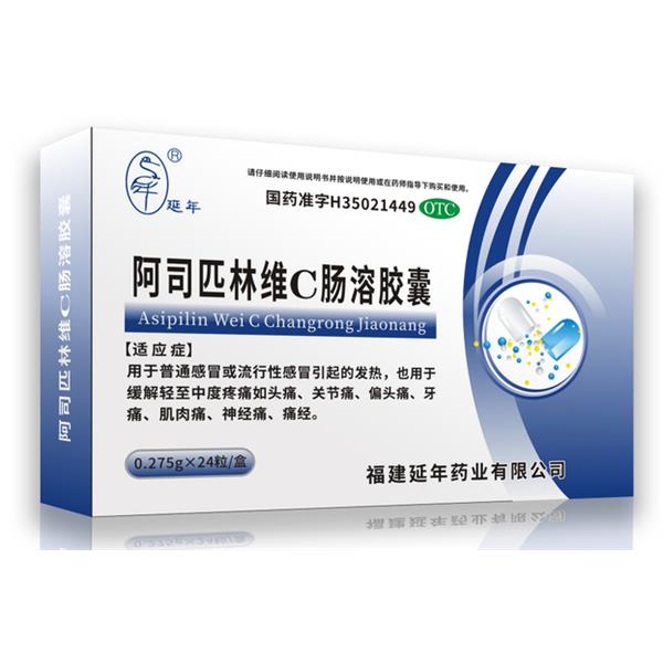 产品名称:阿司匹林维C肠溶胶囊 产品规格:每粒含阿司匹林250毫克、维生素C25毫克